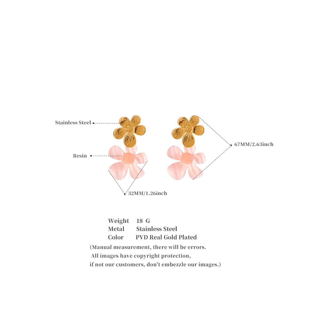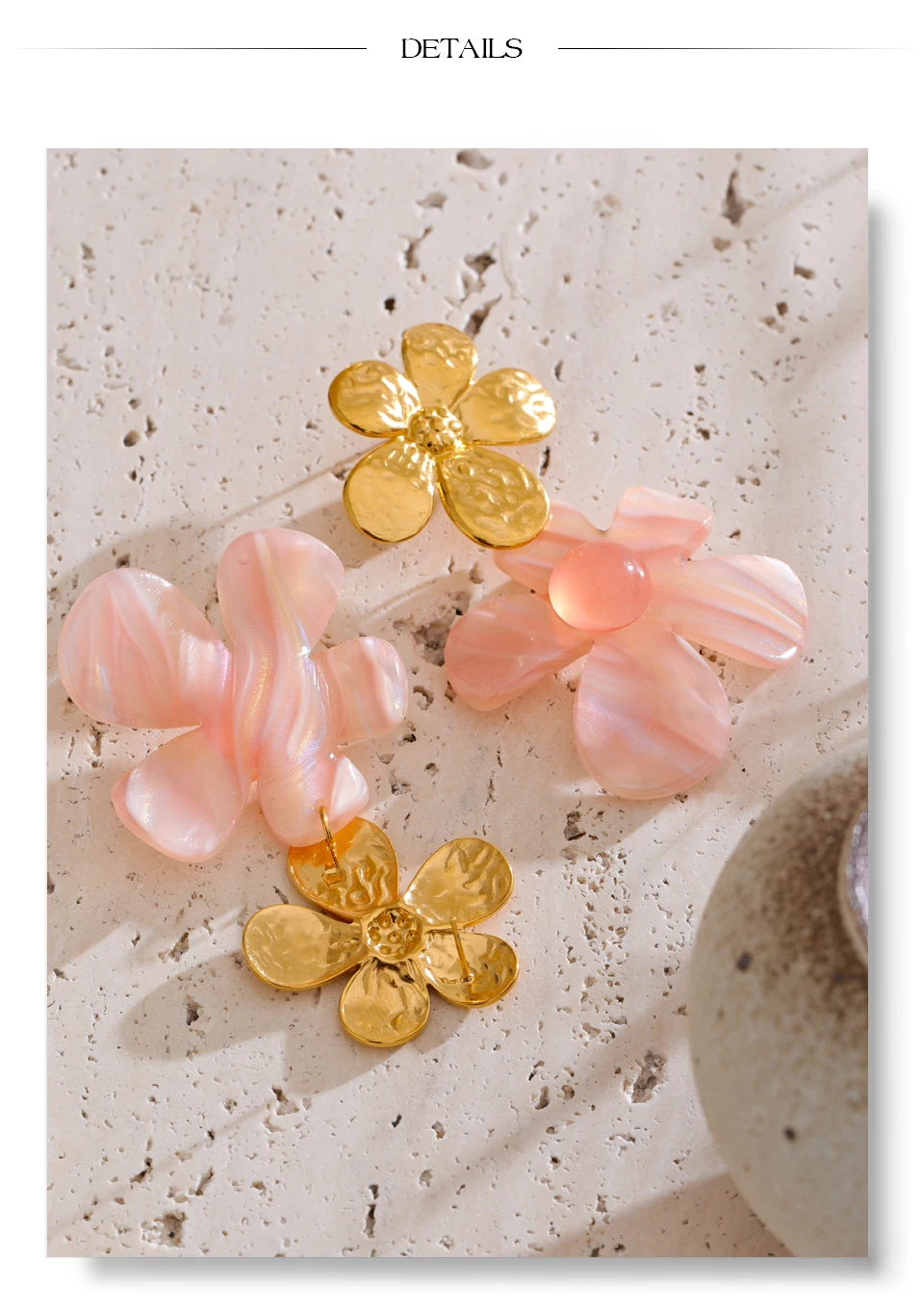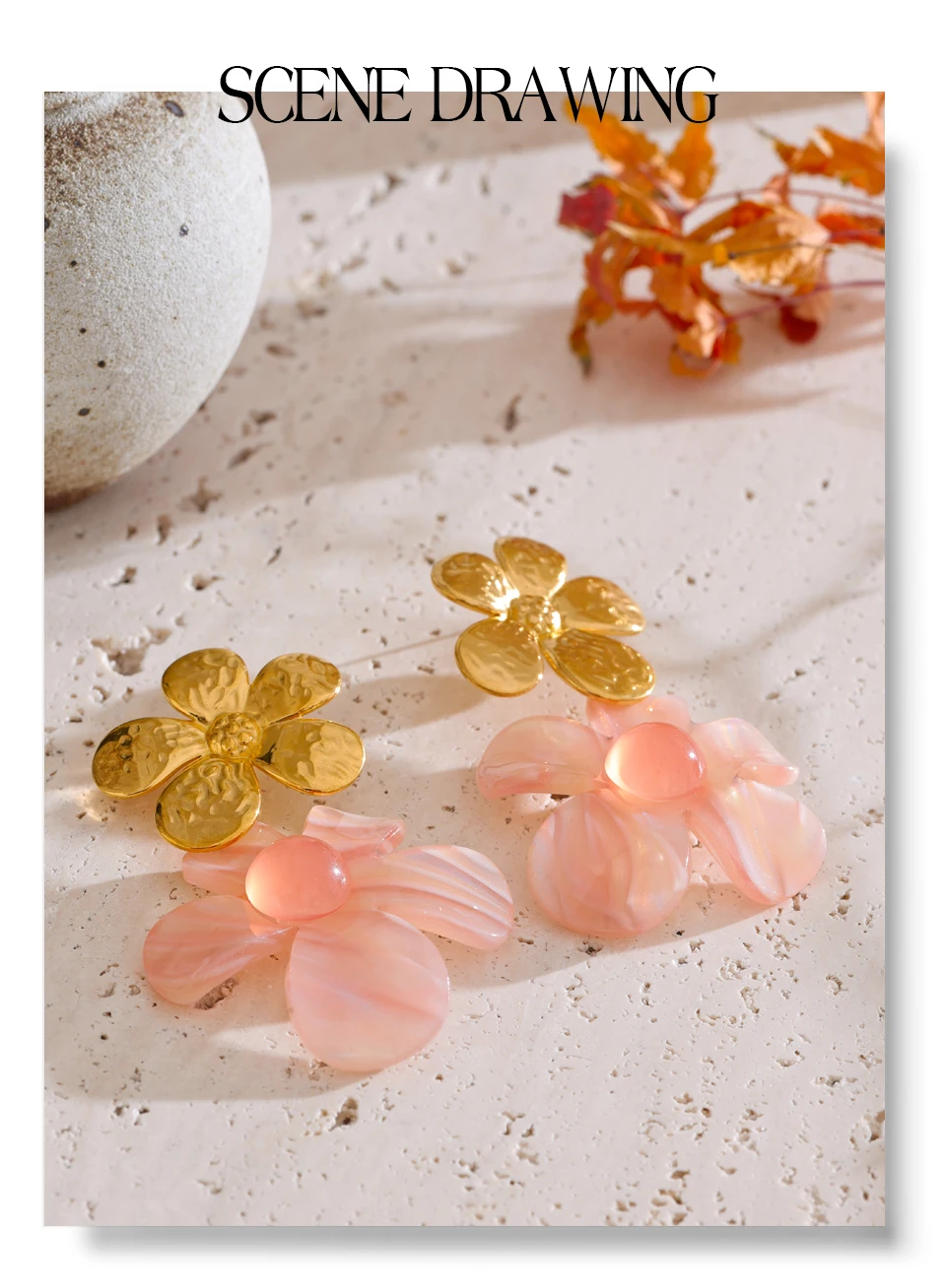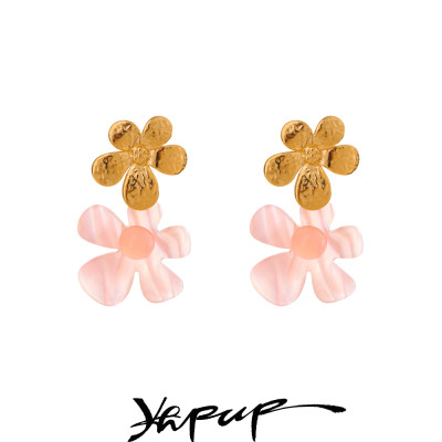 Yhpup 2025 الوردي الراتنج زهرة استرخى الأقراط اليومية المضادة للحساسية الفولاذ المقاوم للصدأ وصول جديد تتجه سحر المجوهرات للنساء