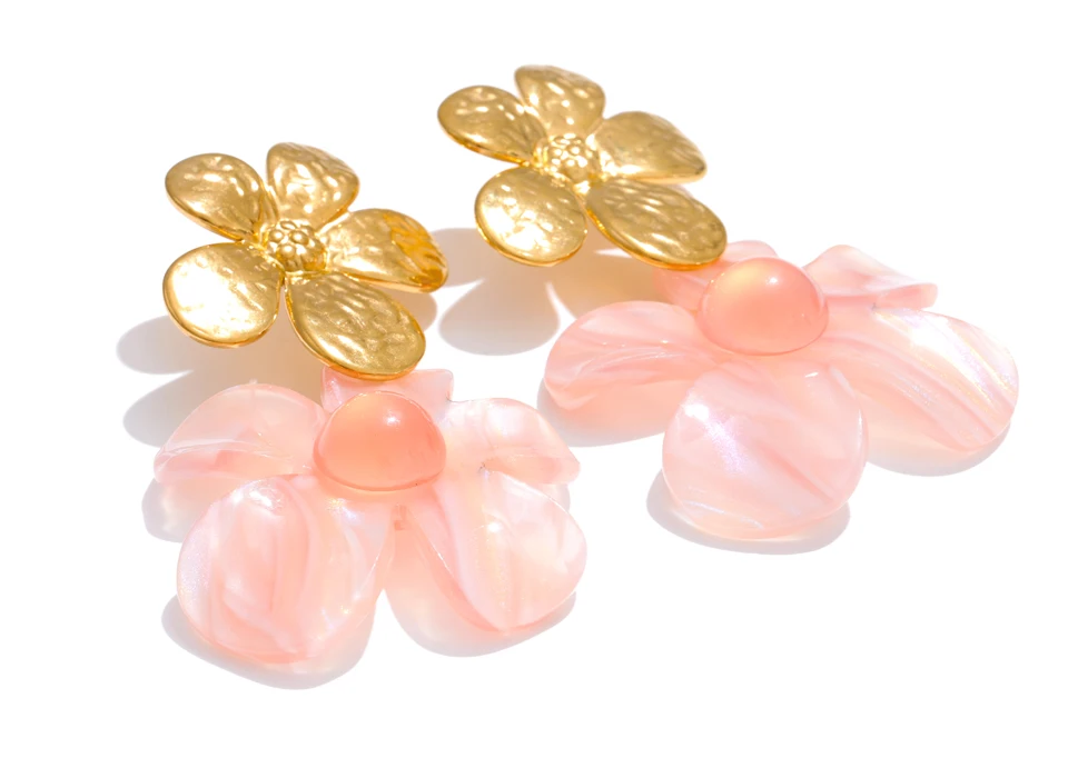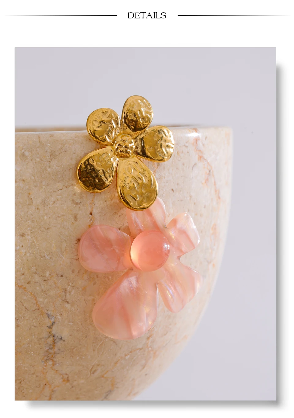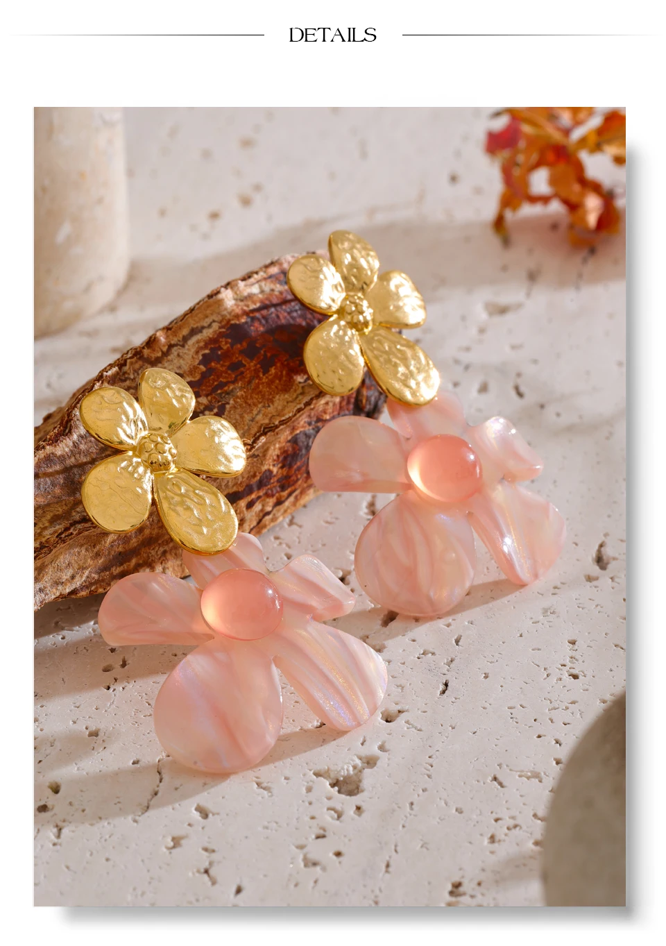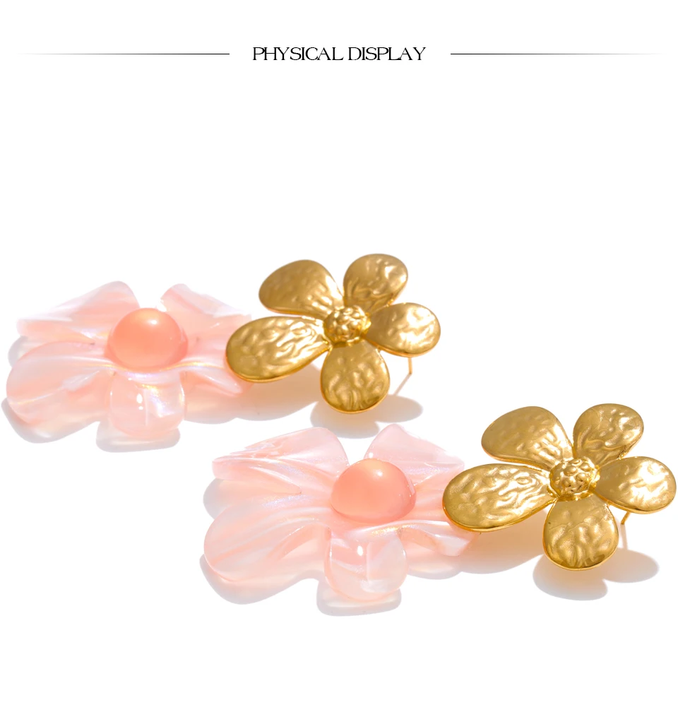 Yhpup 2025 الوردي الراتنج زهرة استرخى الأقراط اليومية المضادة للحساسية الفولاذ المقاوم للصدأ وصول جديد تتجه سحر المجوهرات للنساء